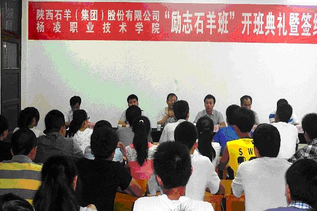 會(huì)上,楊凌職業(yè)技術(shù)學(xué)院動(dòng)物工程學(xué)院王書記對第二屆“勵(lì)志石羊班”的開班表示熱烈祝賀,對石羊集團(tuán)給予學(xué)校教學(xué)改革的支持表示感謝,對校企合作所取得的成績做了充分肯定,對加入訂單班的學(xué)生提出了幾點(diǎn)要求。周博寧總經(jīng)理簡要介紹了石羊集團(tuán)情況,對加入石羊班的同學(xué)表示歡迎,勉勵(lì)同學(xué)們要珍惜機(jī)會(huì),努力學(xué)習(xí),早日成才。