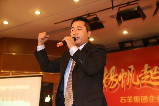 2013年度是石羊集團企業(yè)文化年,此次工作會議特意在晚宴前增加了“事業(yè)與夢想”演講和團隊風(fēng)采展示環(huán)節(jié)。此環(huán)節(jié)由總裁助理趙超與集團項目投資部總經(jīng)理傅巧艷主持,各個產(chǎn)業(yè)選派精英管理人員代表參加。金融、油脂、農(nóng)牧、地產(chǎn)用相同的演藝元素展示各自不同的團隊風(fēng)采和演講者的魅力,現(xiàn)場歡快、熱烈、團結(jié)、激情的氣氛感染了現(xiàn)場的每一個人,徹底引爆了全場的氣氛!