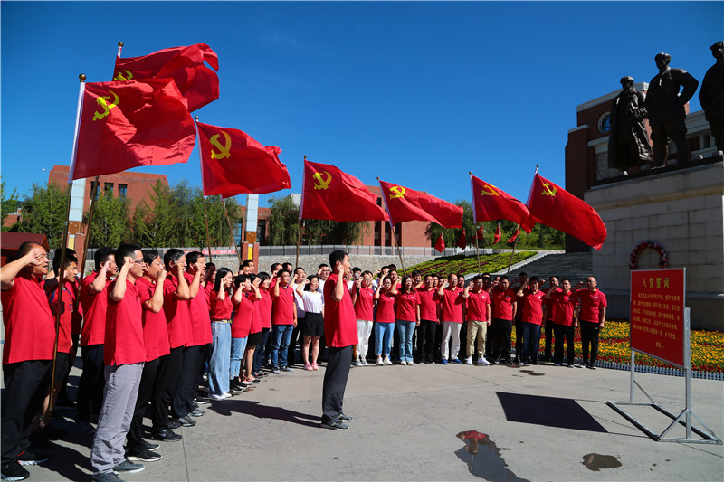 首先,全體參會人員來到照金廣場面對黨旗,莊嚴(yán)肅穆的重溫入黨誓詞。