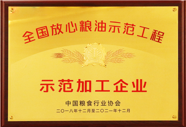 2018年12月-2021年12月中國(guó)糧食行業(yè)協(xié)會(huì)授予“全國(guó)放心糧油示范工程示范加工企業(yè)”