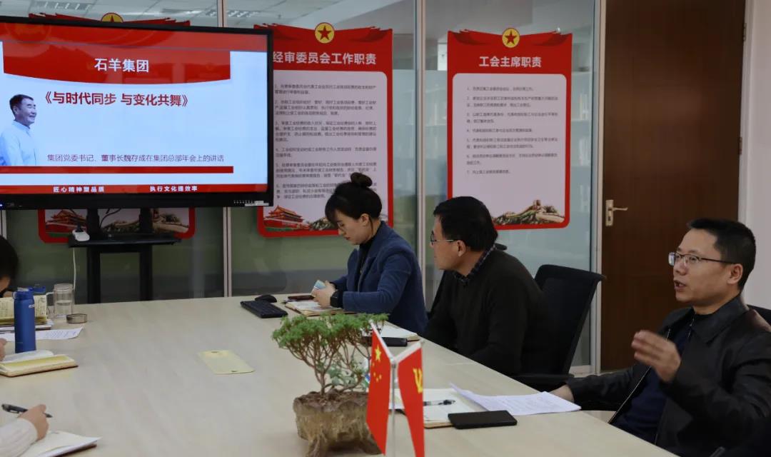 集團工會主席、財務(wù)總監(jiān)段鵬博帶領(lǐng)全體參會人員認(rèn)真學(xué)習(xí)貫徹集團黨委書記、董事長魏存成在集團總部年會上《與時代同步 與變化共舞》的重要講話,落實魏總對全體石羊人要做到學(xué)習(xí)、自律和信任的三個要求。石羊人要有歸零心態(tài),樹立標(biāo)桿,對標(biāo)自己,提升自己,今后就是學(xué)習(xí)者淘汰不學(xué)習(xí)者,創(chuàng)新者淘汰不創(chuàng)新者的時代。