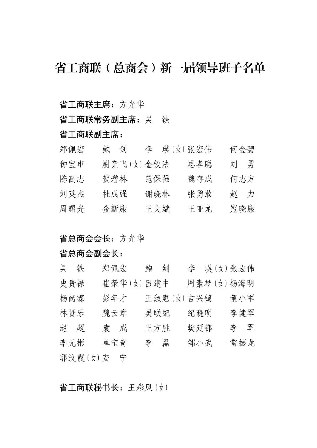 會(huì)議審議并通過(guò)了陜西省工商聯(lián)(總商會(huì))第十二屆執(zhí)委會(huì)工作報(bào)告,選舉產(chǎn)生了省工商聯(lián)(總商會(huì))新一屆領(lǐng)導(dǎo)班子。方光華當(dāng)選省工商聯(lián)主席、省總商會(huì)會(huì)長(zhǎng),石羊集團(tuán)黨委書記、董事長(zhǎng)魏存成等當(dāng)選陜西省工商聯(lián)(總商會(huì))副主席。