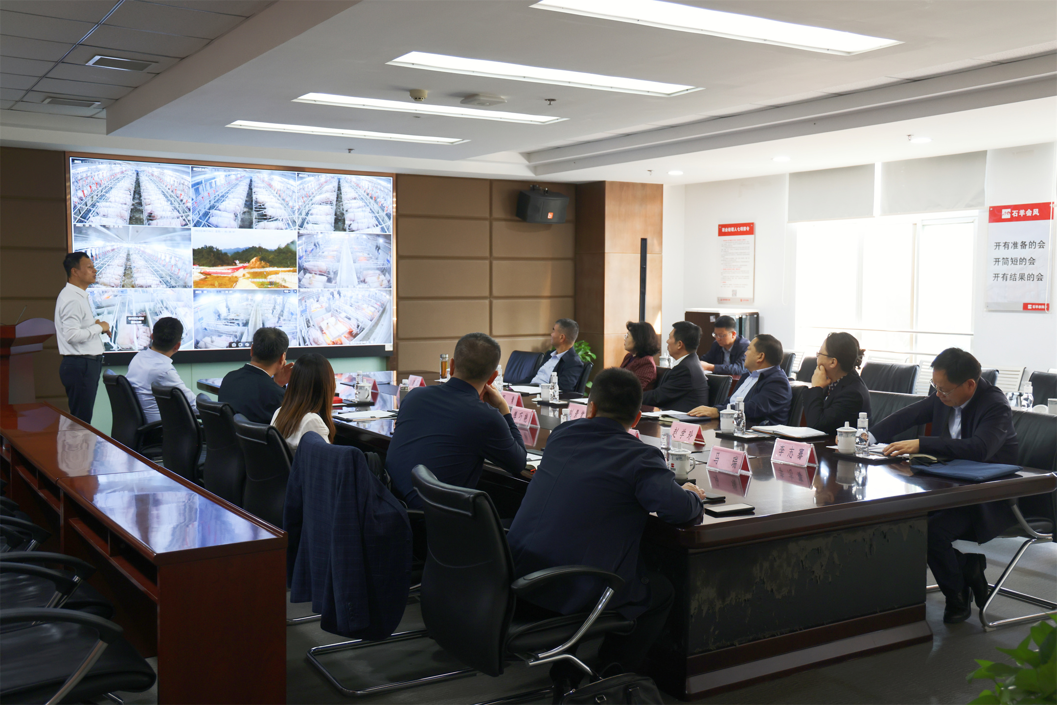 郭青一行先后在石羊食品產(chǎn)業(yè)園,了解入駐食品企業(yè)的生產(chǎn)經(jīng)營情況;在石羊集團(tuán)文化展廳,詳細(xì)了解了石羊集團(tuán)發(fā)展歷程及各產(chǎn)業(yè)發(fā)展現(xiàn)狀;通過云端遠(yuǎn)程監(jiān)控查看養(yǎng)殖場實(shí)時(shí)畫面,了解自動(dòng)化養(yǎng)殖流程及生產(chǎn)過程。參觀結(jié)束后舉行座談。