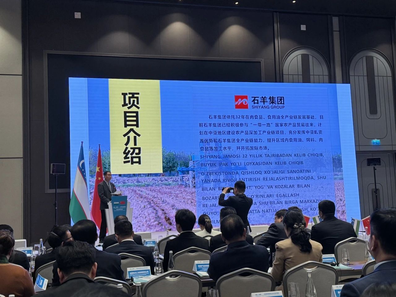 4月28日,由陜西省政府、烏茲別克斯坦投資工業(yè)與貿(mào)易部主辦的中國(陜西)—烏茲別克斯坦經(jīng)貿(mào)洽談會在塔什干舉辦。陜西省長趙剛,烏茲別克斯坦副總理扎姆希德·霍賈耶夫,中國駐烏茲別克斯坦大使于駿出席并致辭。石羊集團作為代表企業(yè)參會,集團黨委書記、董事長魏存成對擬投資項目重點推介。